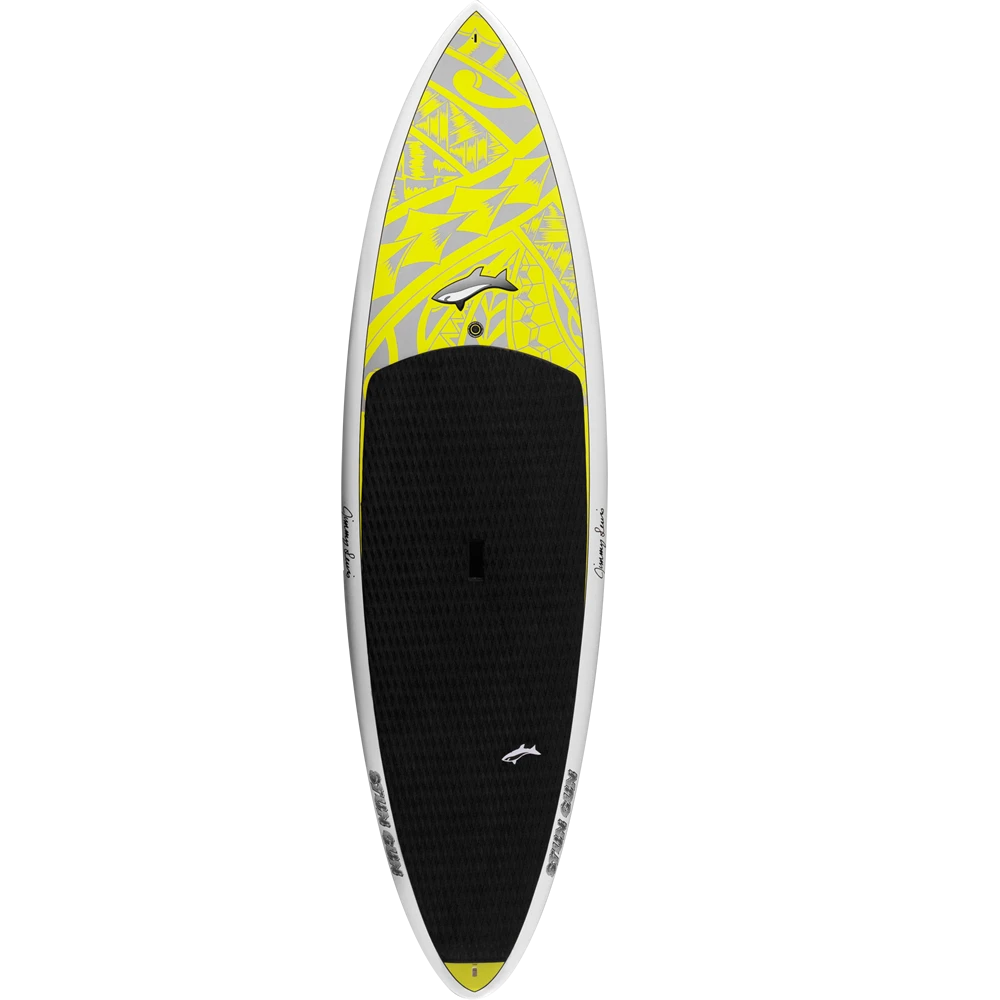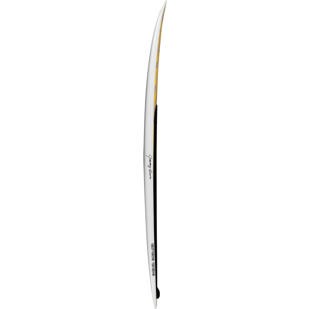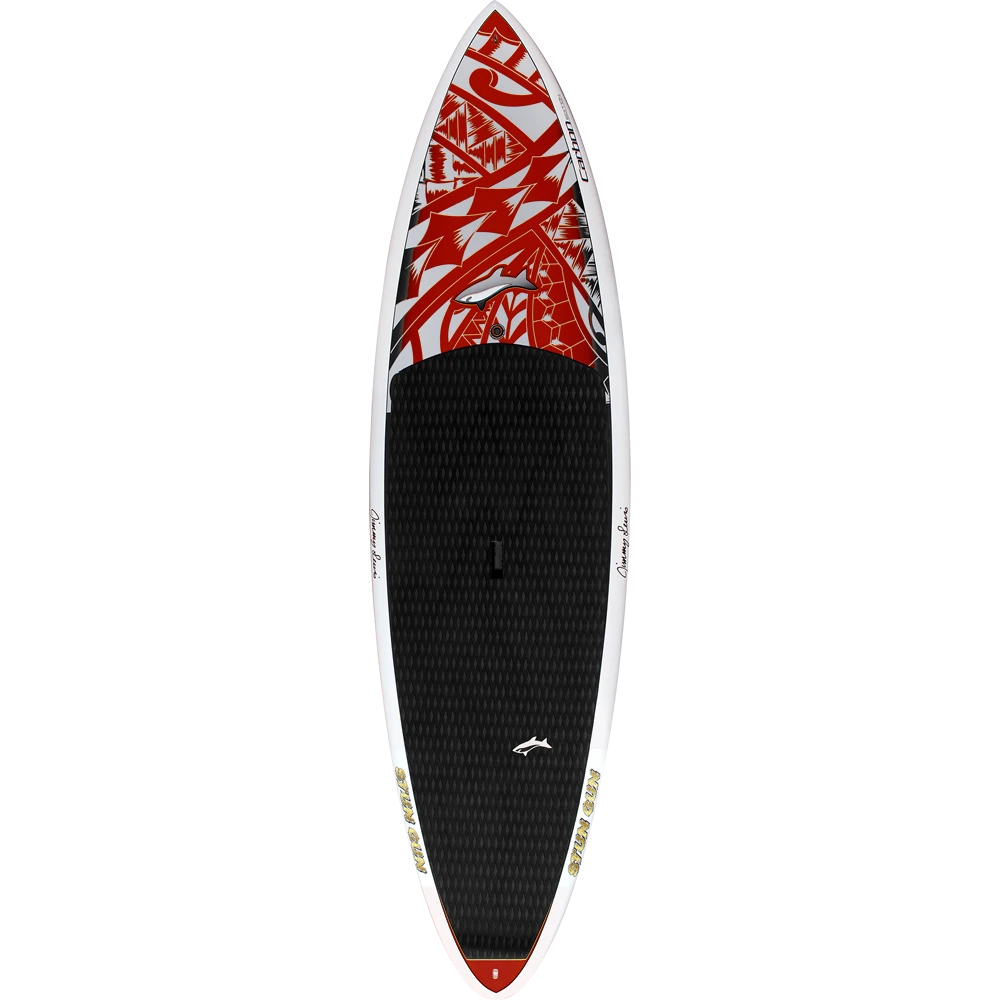 The Stun Gun is the most versatile wave board for decent to excellent waves. Smooth semi gun outline with it’s soft round pin tail makes it hold through quick carving turns. It has a flat bottom all the way from the nose to just in front of the fin area where the “V” starts and flows off of the tail. With that flat bottom there is no governor on the speed and the “V” bottom in the tail allows the rider to lay the board on rail effortlessly to initiate a hard bottom or top turn.