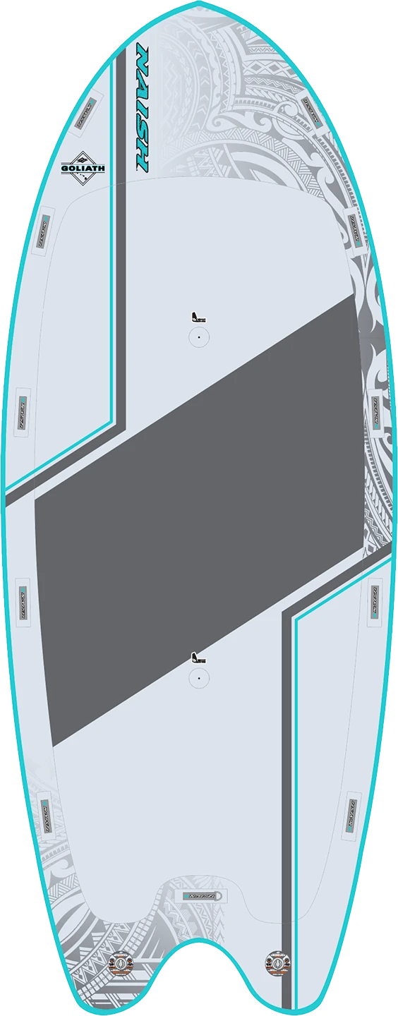 Whether going for a SUP cruise with 6-10 people, tandem windsurfing, tandem wing-surfing, or simply using it as a swim and dive platform or a party barge, the Naish Goliath is all about fun. Built-in an 8” thick sturdy fusion dropstitch construction, the Goliath features a soft and comfortable full deck EVA pad, two flush-mounted windsurfing rig connections on the deck, and four US fin boxes on the bottom. Ten carry handles and two inflation valves make getting in and out of the water fast and easy.