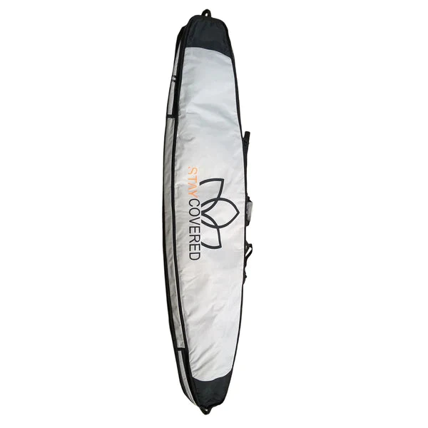 Features: Included are internal tie down straps and a 1/4″ foam padded divider. 6’0″ and 7’0″ sizes have a stash pocket for fins, wax and leashes.